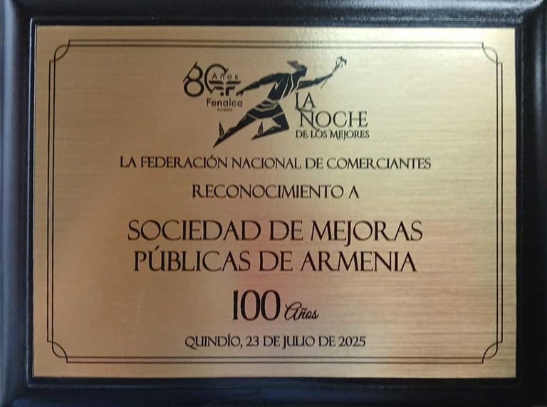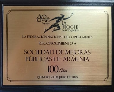 La Sociedad de Mejoras Públicas de Armenia agradece este homenaje que nos inspira a seguir trabajando por una ciudad más viva, humana y próspera. Este premio es un reflejo de la confianza y el apoyo de quienes han creído en nuestra labor a lo largo de un siglo.